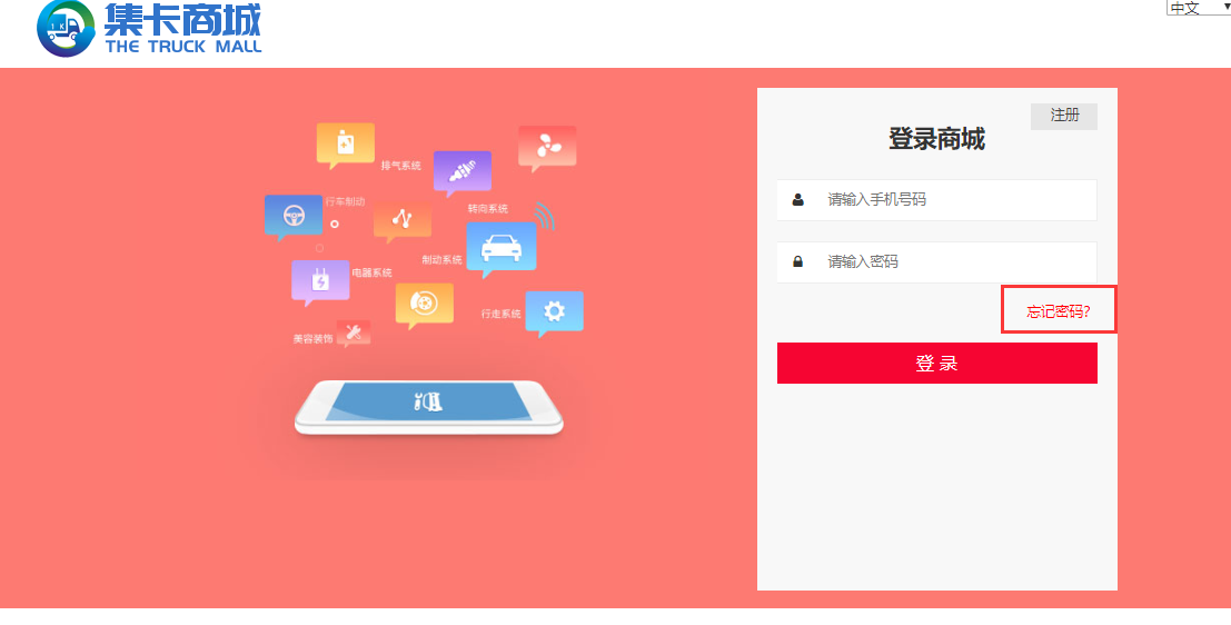 在商城的登录页面,点击“忘记密码”后,输入手机号查收验证码后,重新修改登录密码。(如下图)